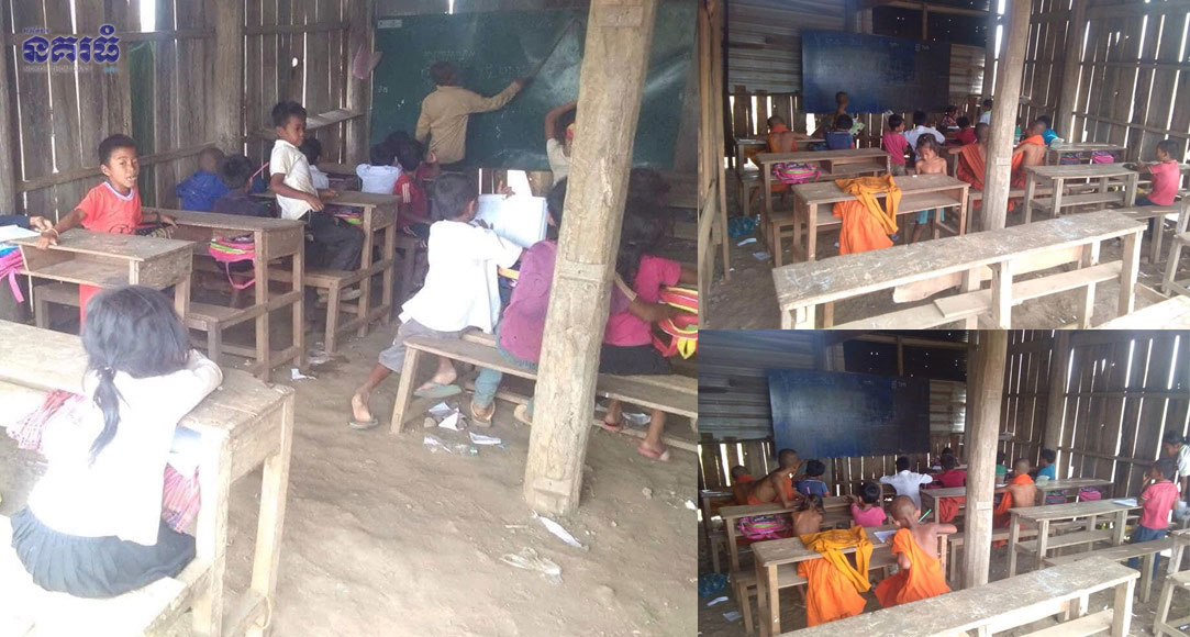 ខេត្តកំពង់ចាម ៖ សិស្សានុសិស្ស លោកគ្រូ អ្នកគ្រូ ប្រជាពលរដ្ឋ ព្រមទាំងព្រះសង្ឃផង បានអំពាវនាវដល់សប្បុរសជន មេត្តាជួយឧបត្ថម្ភដល់ការសាងសង់អគារសិក្សា១ខ្នង ទុកសម្រាប់សិស្សានុសិស្ស ជាកូនចៅអ្នកភូមិបានរៀនសូត្រ ខណៈដែលសាលាសព្វថ្ងៃ មានសភាពចាស់ទ្រុឌទ្រោមពុកផុយ ស្ទើររលំម្តងៗទៅហើយ ពិសេសរាល់ពេលមានភ្លៀងធ្លាក់ គឺលិចផង សាចផង រៀនមិនកើតទាល់តែសោះ។