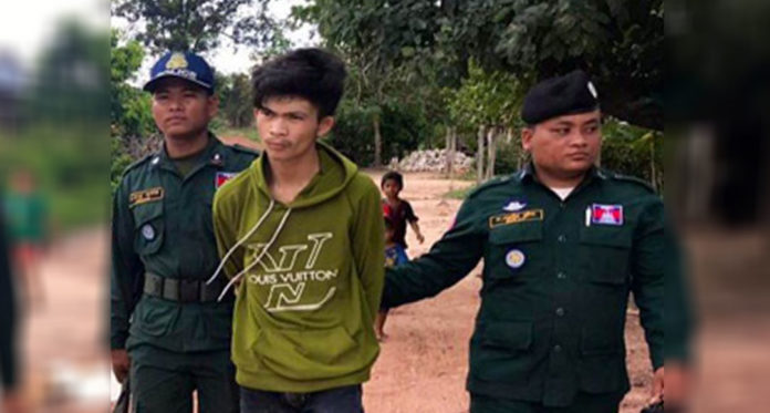យុវជនដែលត្រូវសមត្ថកិច្ចចាប់ឃាត់ខ្លួន មានឈ្មោះរត្ន័ ណាក់ អាយុ២១ឆ្នាំ រស់នៅភូមិជាំ ឃុំត្រពាំងប្រិ៍យ ស្រុកអន្លង់វែង។