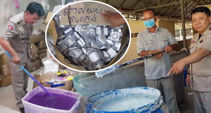 ភ្នំពេញ៖ នៅថ្ងៃទី២០ ខែមិថុនា ឆ្នាំ២០១៩ កម្លាំងសមត្ថកិច្ចចុះបង្ក្រាប ទីតាំងក្រុមហ៊ុនហុងថន ខសបេធីក ឯ ក ដែលផលិតឡេគ្រឿងសម្អាងគ្មានច្បាប់អនុញ្ញាត ដោយបានដកហូតផលិតផលសរុបជាង១២,០១៦១គីឡូក្រាម នៅចំណុចនៅផ្ទះគ្មានលេខ ផ្លូវបេតុង ភូមិទ្រា៣ សង្កាត់ស្ទឹងមានជ័យ១ ខណ្ឌមានជ័យ។