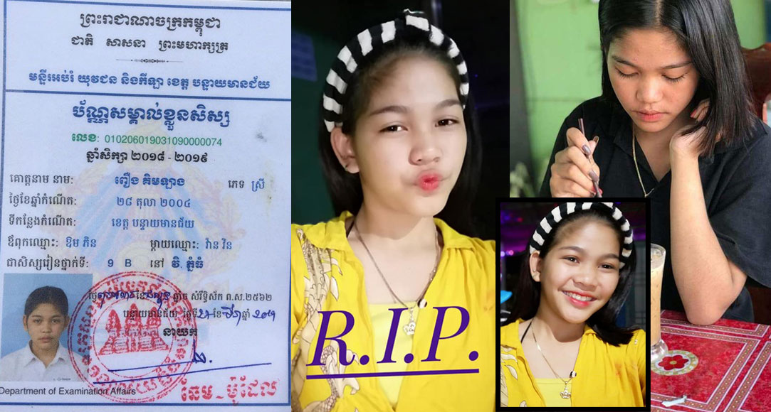 យុវតីរងគ្រោះដែលត្រូវរថយន្តកិនបែកក្បាលស្លាប់យ៉ាងអាណាចអាធ័ម មានឈ្មោះព្រឿង គិមឡាង អាយុ១៥ឆ្នាំ មុខរបរសិស្សថ្នាក់ទី៩B នៃវិទ្យាល័យភ្នំធំ មានឪពុកឈ្មោះឱម ភិន ម្តាយឈ្មោះវ៉ាន់ វិន និងមានលំនៅក្នុងភូមិគោកពន្លៃ ឃុំចំណោម ស្រុកមង្គលបុរី។