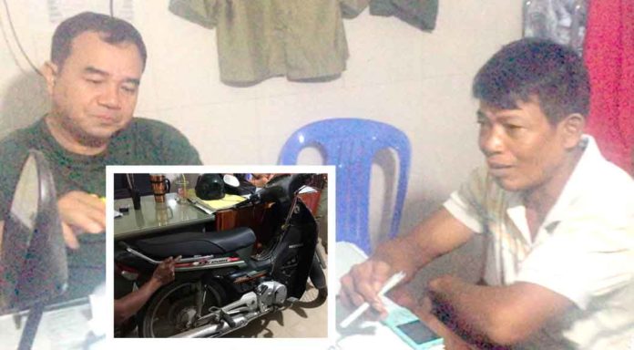 ភ្នំពេញ ៖ បុរសម្នាក់ជិះម៉ូតូ១គ្រឿងចេញមកពីកន្លែងធ្វើការវិញទុកនៅមុខផ្ទះ ស្រាប់តែភ្លេចខ្លួនមួយសន្ទុះក៏ត្រូវជនសង្ស័យបន្លំយកម៉ូតូនោះទៅបាត់ ដោយបន្សល់ទុកម៉ូតូចាស់១គ្រឿងផ្សេងទៀត នៅមុខផ្ទះរបស់ជនរងគ្រោះអស់ជាច្រើនម៉ោង ទើបជនរងគ្រោះបានមកប្តឹងសមត្ថកិច្ចឱ្យជួយអន្តរាគមន៍។