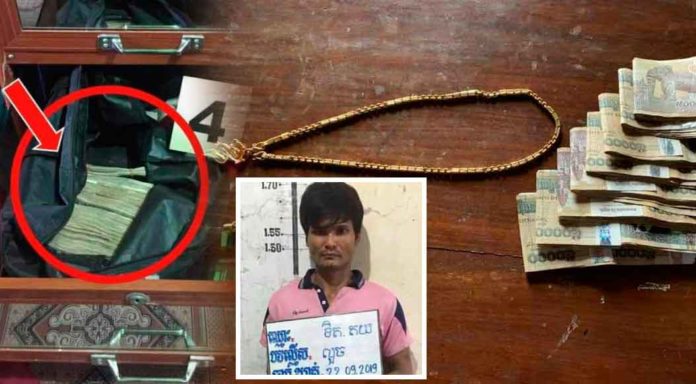 ខេត្តបាត់ដំបង ៖ ជនសង្ស័យម្នាក់បានធ្វើសកម្មភាពលួចគាស់ផ្ទះអ្នកភូមិជាមួយគ្នានៅគ្រាដែលម្ចាស់ផ្ទះមិននៅ និងបានប្រមូលយកលុយចំនួន១៣លានរៀល ព្រមទាំងគ្រឿងអលង្ការមួយចំនួនទៀត រួចក៏បានយកលុយទាំងនោះទៅសងបំណុលគេផង ដើរស៊ីចាយហ៊ឺហាផង ទីបំផុតក៏ត្រូវសមត្ថកិច្ចស្រាវជ្រាវចាប់ក្របួចជាប់ ខណៈដែលមិនទាន់ចាយលុយអស់នៅឡើយ។