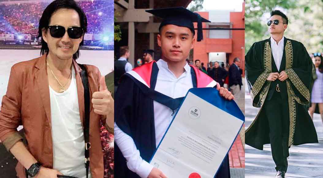 តារាភាពយន្ដល្បីល្បាញឈ្មោះរូបនេះ ថ្លែងសារថា ”កូនប្រុសជាទីស្រលាញ់របស់ប៉ា ថ្ងៃនេះប៉ារំភើបចិត្តណាស់ ដែលបានឃើញកូនទទួលសញ្ញាបត្រថ្នាក់អនុបណ្ឌិត ផ្នែកទំនាក់ទំនងអន្ដរជាតិ ពីសាកលវិទ្យាល័យ DEAKIN UNIVERSITY ក្នុងទីក្រុងម៉ែលប៊ន នៃប្រទេសអូស្ដា្រលី ប៉ាសុំទោសផងណាដែលមិនបានចូលរួមអបអរសាទរផ្ទាល់ជាមួយនិងកូន តែប៉ាចង់ប្រាប់ពីចម្ងាយថា ប៉ាសប្បាយចិត្តខ្លាំងណាស់ ហើយស្រលាញ់កូនខ្លាំងបំផុត ព្រោះតាំងពីតូចដល់ធំ កូនមិនដែលធ្វើឲ្យប៉ានិងម៉ាក់ពិបាកចិត្តម្ដងណាទេ កូនលះបង់ភាពយុវវ័យរបស់កូនដើម្បីតែការសិក្សា។