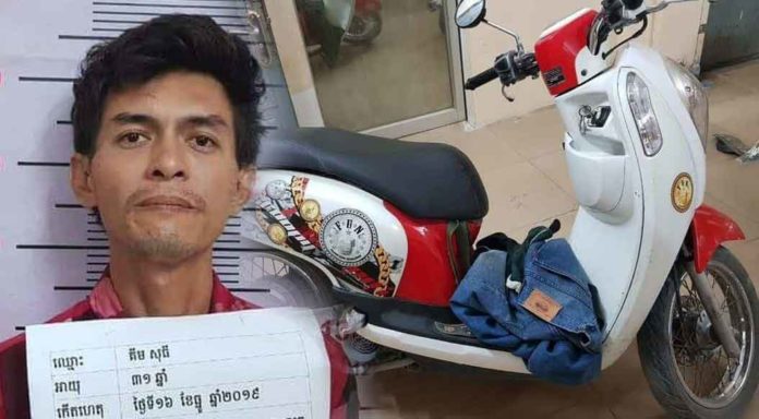 តាមប្រភពពីសមត្ថកិច្ចបានឱ្យដឹងថា នៅមុនពេលកើតហេតុ កម្លាំងជំនាញបានចុះល្បាតលុះមកដល់ចំណុចកើតហេតុខាងលើ ក៏ប្រទះឃើញជនសង្ស័យនៅចំណុចខាងលើ ធ្វើឱ្យមានការសង្ស័យក៏ចូលទៅមើល ឃើញជនសង្ស័យកំពុងធ្វើសកម្មភាពដោះស្លាកលេខម៉ូតូចេញក៏ហៅសួរនាំ។