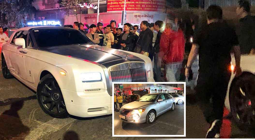ភ្នំពេញ ៖ គ្រោះថ្នាក់ចរាចរណ៍មួយបានកើតឡើងដោយសាររថយន្តមួយគ្រឿង ម៉ាក TOYOTA CAMRY HYBRID ពណ៌ទឹកប្រាក់ ពាក់ស្លាកលេខភ្នំពេញ 2AY-1549 បើកបរដោយបុរសម្នាក់ ក្នុងល្បឿនលឿនបំពានភ្លើងស្ដុប រួចជ្រុលទៅបុករថយន្តស៊េរីទំនើបម៉ាក ROLLS ROYCE របស់ឧកញ៉ាឌួង ឆាយ យ៉ាងពេញទំហឹង បណ្តាលឲ្យរងការខូចខាតក្រពិតទ្វារខាងស្នាំធ្ងន់ធ្ងរ ប៉ុន្តែសំណាងល្អមិនមាននរណាម្នាក់រងរបួស។