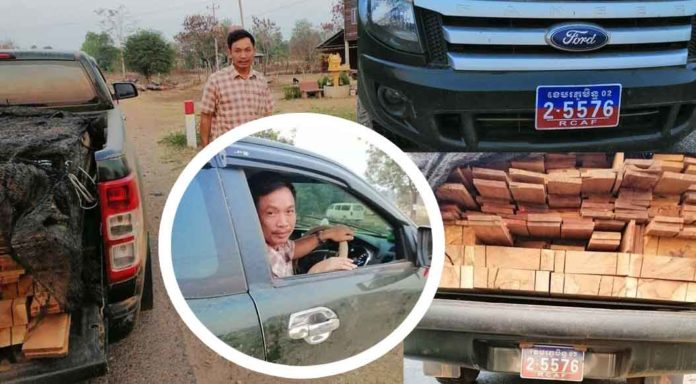 ឈ្មួញជើងខ្លាំងប្រើឡានស្លាកលេខ ខ.ម ដឹកឈើ អត់ង្គើដល់អាជ្ញាធរបន្តិច