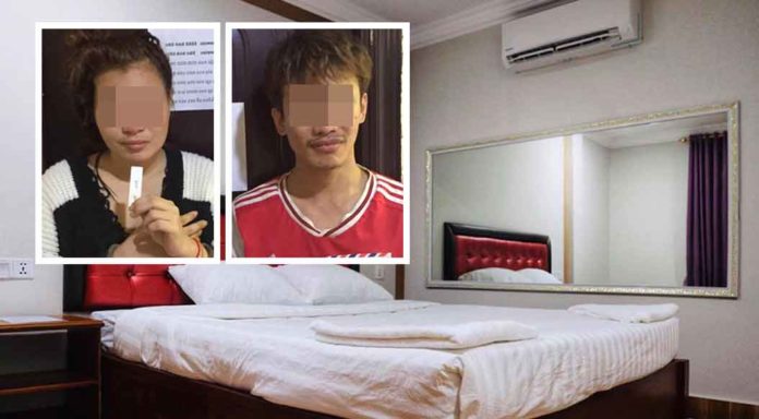 ភ្នំពេញ ៖ គូស្នេហ៍១គូបាននាំគ្នាចូលទៅដេកក្នុងផ្ទះសំណាក់១កន្លែង លុះព្រឹកឡើង អត់មានលុយឱ្យគេ ក៏ត្រូវម្ចាស់ផ្ទះសំណាក់ប្តឹងសមត្ថកិច្ចឱ្យជួយអន្តរាគមន៍ចុះឃាត់ខ្លួនសួរនាំ បែរជាប្រទះឃើញមានថ្នាំញៀន១កញ្ចប់តូច នៅជាប់ខ្លួន ទើបចាប់ឃាត់ខ្លួនគូស្នេហ៍មួយនេះនាំយកទៅចាត់ការតាមច្បាប់។