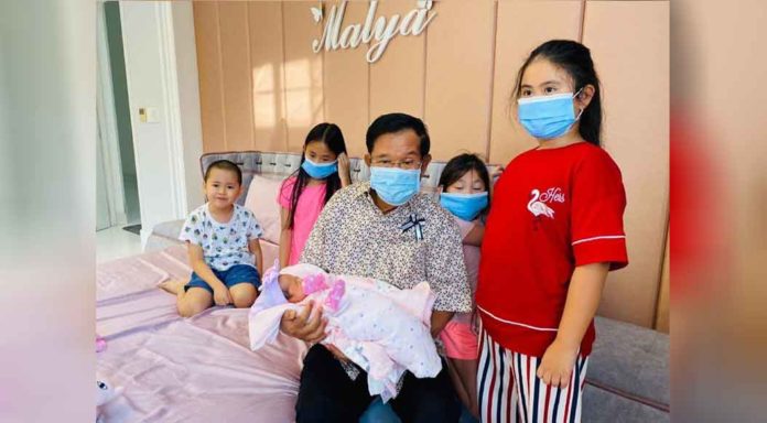 ភ្នំពេញ ៖ សម្តេចហ៊ុន សែន នាយករដ្ឋមន្ត្រីនៃព្រះរាជាណាចក្រកម្ពុជា បានឱ្យដឹងថា សម្តេចទើបតែបានបីចៅស្រីទី២១ បន្ទាប់ពីចៅស្រីកើតបាន៥ថ្ងៃ។ ជាមួយនេះ សម្តេចនាយករដ្ឋមន្ត្រី បានលើកឡើងថា មានចៅ២១នាក់ (ប្រុស១២ ស្រី៩) អាចបង្កើតក្រុមកីឡាបាល់៣ប្រភេទ (បាល់ទាត់បាល់ទះ បាល់បោះ) បាន៤ក្រុម។