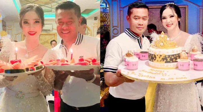 ប៉ុន្តែក្នុងថ្ងៃពិសេសរបស់ម៉ារីណា គេក៏ឃើញស្វាមីរបស់នាង លោកសាត ចាន់ថន ក៏បានចូលរួមជូនពរភរិយារបស់លោកដែរ ក្រោយពីលោកបានហោះពីអាមេរិក មកសម្ងំនៅស្រុកខ្មែរ ជាច្រើនខែមកហើយ។