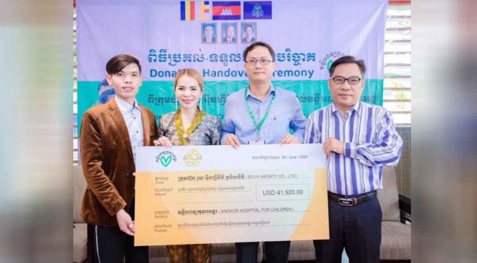 កាលពីថ្ងៃទី៣០ ខែមិថុនា ឆ្នាំ២០២០ ក្រុមហ៊ុន រួយ អ៊ីនហ្វីនីធី បានពាំនាំយក ថវិកាពីការរួមទឹកចិត្តគ្នារបស់សប្បុរសជន សរុបចំនួន៤១៩២០ដុល្លារ ប្រគល់ជូនដល់មន្ទីរពេទ្យ “ កុមារអង្គរ” នាខេត្តសៀមរាប។