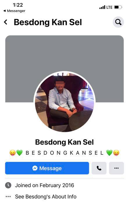 តារាសម្តែង អៀ ម៉េងលិ ប្រុសម្នាក់ប្រើគណនីហ្វេសប៊ុក “Besdong Kan Sel” ផ្ញើរូបពិសេស