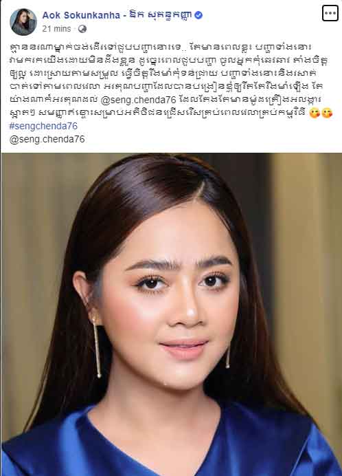 ឱក សុគន្ធកញ្ញា លើកទឹកចិត្តខ្លួនឯង “អរគុណ​បញ្ហា​ ដែល​បាន​បង្រៀន​ឲ្យ​រឹតតែ​រឹងមាំ​ឡើង”