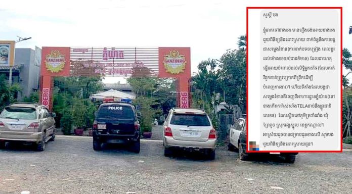 ក្រុមការងារព័ត៌មាននិងប្រតិកម្មរហ័ស នៃអធិការដ្ឋាននគរបាលស្រុកអង្គស្នួល បានបញ្ជាក់ឱ្យដឹងថា ក្រោយពីទទួលបានបណ្តឹងរបស់ប្រជាពលរដ្ឋដែលបានប្តឹងចូលគណនីហ្វេសប៊ុកអធិការដ្ឋាននគរបាលស្រុកអង្គស្នួល ដែលមានខ្លឹមសារថា “សួស្តីបង ខ្ញុំឆាតទៅខាងបង មានរឿងចង់ឱ្យខាងបងជួយពិនិត្យនិងដោះស្រាយ ពាក់ព័ន្ធនឹងការបង្កជាសំឡេងរំខានការចាក់បទចម្រៀង ពេលខ្លះដល់ម៉ោង១១យប់ជាងក៏មាន ដែលជាហេតុធ្វើឱ្យប៉ះពាល់ដល់សិទ្ធិអ្នកដទៃ ដែលគាត់ឬពួកគាត់ ត្រូវក្រោកពីព្រឹក ដើម្បីបំពេញការងារ។