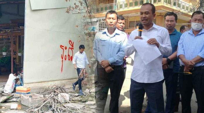 ដូច្នេះស្នើបងប្អូនប្រជាពលរដ្ឋ និងអាជីវករដែលមានលំនៅឋាន សំយាបផ្ទះ របង ការដាក់តាំងស្លាកយីហោ ប៉ាណូខុសច្បាប់ និងសំណង់ផ្សេងៗដែលបានសាងសង់រំលោភលើប្រព័ន្ធលូបង្ហូរទឹក និងចិញ្ចើមផ្លូវសាធារណៈ ត្រូវរុះរើចេញឲ្យផុត ក្នុងរយៈពេល ១០ថ្ងៃ ដោយគិតចាប់ពីថ្ងៃទទូលបានសេចក្ដីជូនដំណឹងនេះតទៅ ។