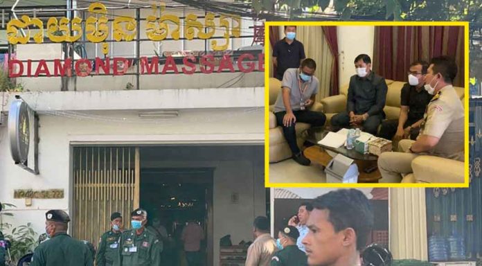 ភ្នំពេញ ៖ ទីតាំងម៉ាស្សាបង្កប់សេវាផ្លូវភេទមួយកន្លែង ដែលបានធ្វើការផ្សព្វផ្សាយផុលផុសតាមប្រព័ន្ធហ្វេសប៊ុកនោះ ត្រូវបានសមត្ថកិច្ចចុះប្រតិបត្តិការបង្ក្រាប និងឃាត់ខ្លួនបុរសម្នាក់ដែលអះអាងថាជាសន្តិសុខ នាំទៅសាកសួរនៅអធិការដ្ឋាននគរបាលខណ្ឌដូនពេញ។