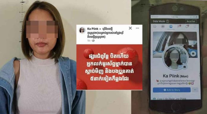 ភ្នំពេញ ៖ នារីរូបស្រស់ម្នាក់នៅសុខៗរពឹសដៃបង្ហោះសារតាមរយៈគណនីហ្វេសប៊ុកផ្ទាល់ខ្លួន បង្អើលថា មានករណីឆ្លងជំងឺកូវីដ១៩ នៅផ្សារជម្ពូវ័ន និងបណ្តាលឱ្យមនុស្សម្នាក់បានស្លាប់ ចំណែកសាច់ញាតិ៥នាក់ទៀត ក៏បានឆ្លងជំងឺមួយនេះដែរ ជាហេតុធ្វើឱ្យមានការចែករំលែក និងភ្ញាក់ផ្អើលយ៉ាងខ្លាំងពេញក្នុងបណ្តាញសង្គមហ្វេសប៊ុក ទីបំផុតក៏ត្រូវសមត្ថកិច្ចឃាត់ខ្លួននាំយកទៅអប់រំណែនាំ។