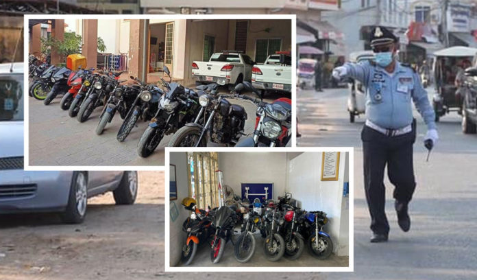 ភ្នំពេញ ៖ ត្រឹមរយៈពេល២០ថ្ងៃ ក្នុងខែមករា ដើមឆ្នាំ២០២១នេះ សមត្ថកិច្ចបានធ្វើការឃាត់ទុកម៉ូតូដែលបានកែច្នៃបំពង់ស៊ីម៉ាំងខុស បច្ចេកទេស ដែលមានសំឡេងឭខ្លាំងប្រមាណ១០០គ្រឿង នៅក្នុងរាជធានីភ្នំពេញ។