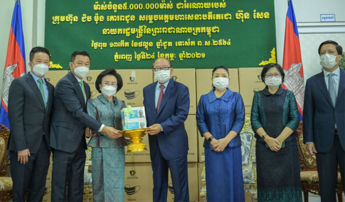 ពិធីប្រគល់-ទទួល ម៉ាស់ចំនួន៥.០០០.០០០នេះ ធ្វើឡើងនៅថ្ងៃទី២៤ កុម្ភៈ ២០២១ នាទីស្តីការក្រសួងសុខាភិបាល។