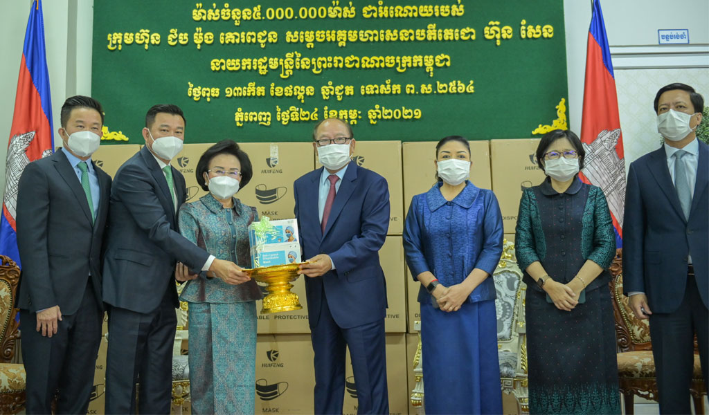 ក្រុមហ៊ុន ជីប ម៉ុង ប្រគល់ម៉ាស់ចំនួន៥.០០០.០០០ ជាអំណោយគោរពជូនសម្ដេចអគ្គមហាសេនាបតីតេជោ ហ៊ុន សែន នាយករដ្ឋមន្រ្តីនៃព្រះរាជាណាចក្រកម្ពុជា ដើម្បីប្រើប្រាស់ក្នុងយុទ្ធនាការប្រយុទ្ធប្រឆាំងកូវីដ-១៩។