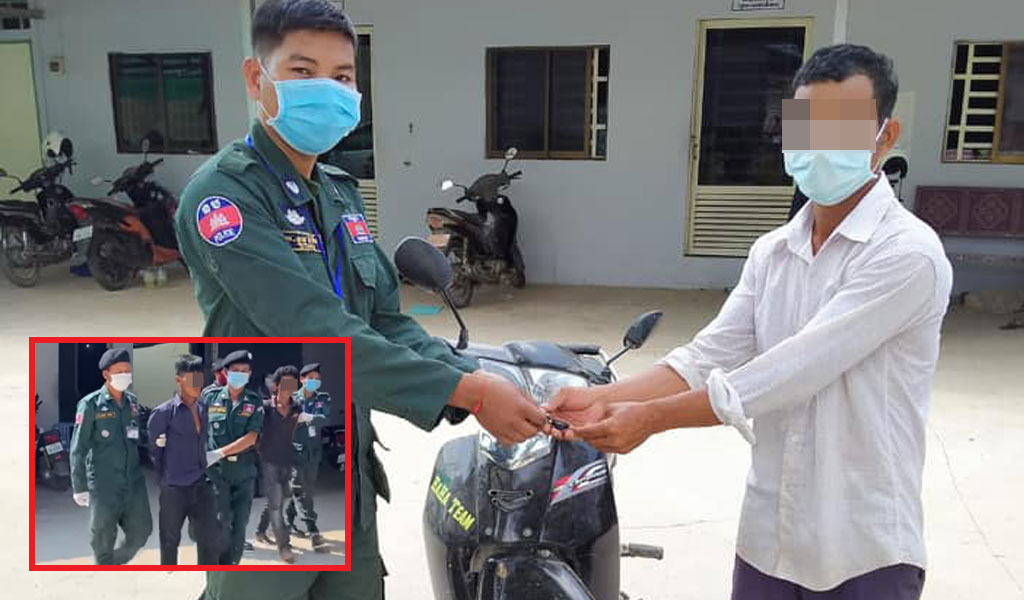 ប្រភពឱ្យដឹងថា មួយសន្ទុះក្រោយមក ម្ចាស់ក្រឡេកទៅមើលម៉ូតូ ស្រាប់តែបាត់ពីកន្លែងចតទុក ក៏រកមើលតែមិនឃើញ ទើបរត់ទៅប្តឹងសមត្ថកិច្ចឱ្យជួយស្រាវជ្រាវ។ ភ្លាមៗនោះ ដោយមិនបង្អង់យូរ កម្លាំងរបស់អធិការដ្ឋាន និងប៉ុស្តិ៍ បានតាមរក និងស្ទាក់គ្រប់ច្រកល្ហក រហូតឃាត់ខ្លួនពួកគេបានទាំង២នាក់តែម្តង។