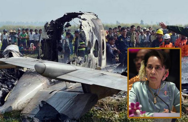 តុលាការចោទលោកស្រី អ៊ុង ស៊ានស៊ូជី ពីបទពុករលួយ ខណៈធ្លាក់យន្តហោះយោធា ស្លាប់១២នាក់