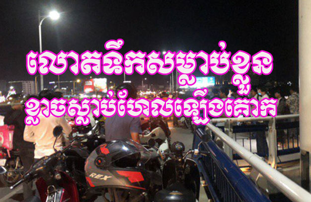 ភ្នំពេញ ៖ បុរសម្នាក់ មិនដឹងថាមានវិបត្តិផ្លូវចិត្តរឿងអ្វីធំធេងដោះស្រាយមិនចេញ ស្រាប់តែបែកគំនិតគិតខ្លី ប៉ុនប៉ងបញ្ចប់ជីវិត ដោយជិះម៉ូតូ ១គ្រឿង ទៅឈប់លើស្ពានជ្រោយចង្វា បន្ទាប់មកក៏ស្ទុះលោតចូលទឹកទាំងកំរោល ដោយគ្មានស្ទើរស្ទាក់អ្វីទាំងអស់ ស្រាប់តែពេល ធ្លាក់ចូលដល់ក្នុងទឹក ឈ្លក់ទឹក ខ្លាចស្លាប់ ក៏ប្រឹងប្រវេប្រវាហែលសំដៅច្រាំងវិញ និងត្រូវបានប្រជានេសាទប្រទះឃើញ ជួយស្រង់ឡើងទូក ដឹកឡើងលើគោក។