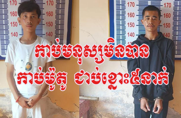 ជនសង្ស័យទាំង ៥នាក់ ដែលត្រូវសមត្ថកិច្ចចាប់ឃាត់ខ្លួន រួមមាន ៖ ទី១-ឈ្មោះរ៉េត រតនៈគង្គា ហៅគា ភេទប្រុស អាយុ២០ឆ្នាំ មានលំនៅ ភូមិកោះខ្លូត ឃុំកំពង់ត្រាចខាងកើត ស្រុកកំពង់ត្រាច។ ទី២- ឈ្មោះសាន តាំងឡុង ភេទប្រុស អាយុ១៥ឆ្នាំ មានលំនៅ ភូមិកោះខ្លូត ឃុំកំពង់ត្រាចខាងកើត ស្រុកកំពង់ត្រាច។ ទី៣-ឈ្មោះទិត យុទ្ធ ភេទប្រុស អាយុ១៩ឆ្នាំ មានលំនៅ ភូមិកោះចម្ការ ឃុំបឹងសាលាខាងត្បូង ស្រុកកំពង់ត្រាច។ ទី៤-ឈ្មោះស៊ីន ឡាយ ភេទប្រុស អាយុ១៦ឆ្នាំ មានលំនៅ ភូមិអន្លង់ថ្ងាន់ ឃុំឫស្សីស្រុកខាងកើត ស្រុកកំពង់ត្រាច និងទី៥- ឈ្មោះមាស ដារ៉ា ភេទប្រុស អាយុ១៧ឆ្នាំ មានលំនៅ ភូមិដាស់ស្គរ ឃុំបឹងសាលាខាងជើង ស្រុកកំពង់ត្រាច។