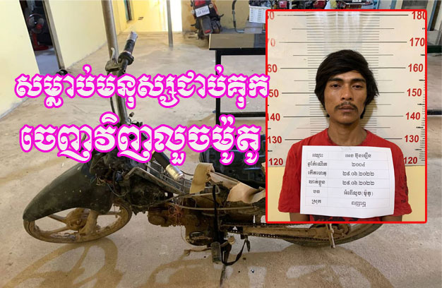 ខេត្តកណ្តាល ៖ ជនសង្ស័យម្នាក់ ទើបនឹងចេញពីពន្ធនាគារថ្មីៗ (ពាក់ព័ន្ធនឹងការប្រើហិង្សាបណ្តាលឱ្យមនុស្សស្លាប់) បែរជាធ្វើសកម្មភាពលួចម៉ូតូកញ្ចាស់ ១គ្រឿង បានសម្រេច តែរត់គេចបានតែប៉ុន្មានម៉ោង ក៏ត្រូវសមត្ថកិច្ចតាមចាប់ខ្លួនបាន នាំយកមកចាត់ការតាមច្បាប់។