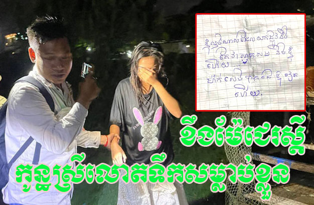ភ្នំពេញ ៖ យុវតីម្នាក់ តូចចិត្តរឿងម្តាយជេរស្តីបន្ទោស និងមានរឿងលាក់ទុកក្នុងចិត្តជាច្រើនទៀតរាប់មិនអស់ ធ្វើឱ្យសុញគំនិត គិតអ្វីមិនចេញ ក៏សម្រេចចិត្តគិតខ្លី លោតទឹកសម្លាប់ខ្លួន ដោយទុកពាក្យបណ្តាំផ្តាំលានិងសុំទោសម្តាយរបស់ខ្លួនទៀតផង ប៉ុន្តែសំណាងល្អ ត្រូវបានប្រជានេសាទប្រទះឃើញ ចេញទូកជួយសង្គ្រោះទាន់ពេល។