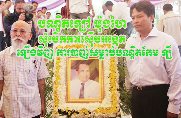 ភ្នំពេញ ៖ បណ្ឌិតឡៅ ម៉ុងហៃ អ្នកវិភាគនយោបាយនិងសង្គម បានស្នើសុំតុលាការ បើកការស៊ើបអង្កេតជាថ្មីទាំងអស់ឡើងវិញ ករណីបាញ់សម្លាប់បណ្ឌិតកែម ឡី អ្នកវិភាគ និងជាអ្នកស្រាវជ្រាវសង្គមដើម្បីការអភិវឌ្ឍ ដោយលោកបានលើកឡើងថា អត់សមហេតុផលសោះថា លោកបណ្ឌិត កែម ឡី ជំពាក់លុយឃាតករជួប សម្លាប់ ៣០០០ដុល្លារ ហើយអត់សមហេតុផលសោះថា ជួប សម្លាប់ ចំណាយលុយទៅទិញកាំភ្លើងដែលមានតម្លៃដល់ទៅជាង ៣០០០ដុល្លារ សម្រាប់ទៅបាញ់សម្លាប់កែម ឡី ដើម្បីទារលុយ ៣០០០ដុល្លារ ហើយអត់សមហេតុផងសោះថា ជួប សម្លាប់ ល្ងង់ដល់ទៅមិនដឹងថា មិនអាចទារលុយបានពីមនុស្សស្លាប់ ហើយបើបាញ់គេស្លាប់ នឹងជាប់គុក ។