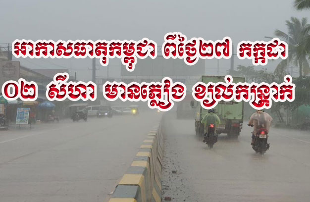 – ចាប់ពីថ្ងៃទី២៧-៣១ ខែកក្កដា ឥទ្ធិពលពីកម្រិតសម្ពាធទាបខ្សោយ