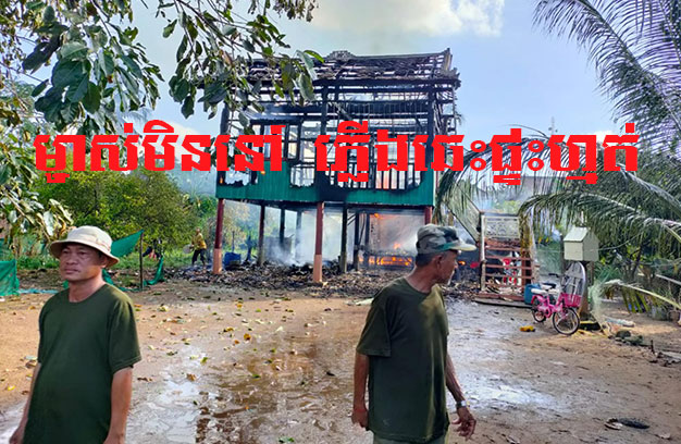 ខេត្តកំពង់ចាម ៖ ផ្ទះមួយខ្នង ត្រូវបានអគ្គិភ័យឆាបឆេះយ៉ាងសន្ធោសន្ធៅ ខណៈដែលម្ចាស់ផ្ទះមិននៅ ដោយបុរសជាប្តីរវល់ចេញទៅធ្វើចម្ការ ចំណែកស្ត្រីជាប្រពន្ធ បានចេញទៅអង្គុយលេងនៅផ្ទះអ្នកជិតខាង ស្រាប់តែកើតមានហេតុការណ៍អគ្គិភ័យ បង្កឱ្យឆេះបំផ្លាញផ្ទះទាំងមូល រួមនិងទ្រព្យសម្បត្តិទាំងស្រុង។