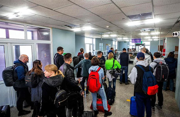 ជនជាតិរុស្ស៊ីត្រូវបានបង្ខំឱ្យតម្រង់ជួរជាច្រើនម៉ោងនៅច្រកព្រំដែន Kyakhta ក្នុងខេត្ត Buryatia របស់ជនជាតិភាគតិចម៉ុងហ្គោល ប៉ុន្តែពួកគេបាននិយាយថា មានជម្រើសតិចតួច បន្ទាប់ពីប្រធានាធិបតី លោកវ៉្លាឌីមៀពូទីនបានប្រកាស ការចល័តទ័ពដោយផ្នែកចំនួន៣០ម៉ឺននាក់ ក្នុងគោលបំណងវាយតបប្រឆាំងជាមួយអ៊ុយក្រែនចំពោះទឹកដីដែលខ្លួនកំពុងកាន់កាប់។