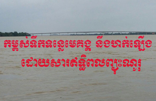 – ទឹកទន្លេមេគង្គ នឹងហក់ឡើងក្នុងរយៈពេលពី៣ ទៅ៥ថ្ងៃខាងមុខ ជាពិសេសនៅភាគខាងលើនៃប្រទេសកម្ពុជា មានខេត្តស្ទឹងត្រែង ទឹកនឹងអាចឡើងដល់កម្ពស់ ១០,០០ម៉ែត្រ។ ខេត្តក្រចេះ ទឹកនឹងអាចឡើងដល់កម្ពស់ ២១,០០ម៉ែត្រ និងខេត្តកំពង់ចាម ទឹកនឹងអាចឡើងដល់កម្ពស់ ១៤,៣០ ម៉ែត្រ។ រីឯនៅស្ថានីយជលសាស្ត្រភ្នំពេញ-ចតុមុខ ទឹកអាចឡើងដល់កម្ពស់ ៩,៤០ម៉ែត្រ។