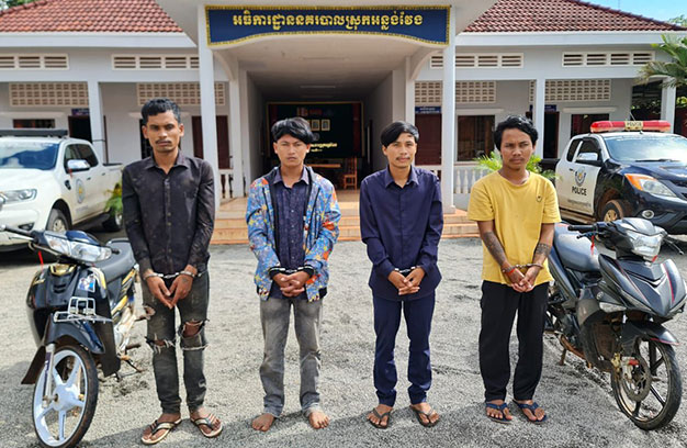ក្រោយកើតហេតុ ជនរងគ្រោះ បានដាក់ពាក្យបណ្តឹងសុំឱ្យសមត្ថកិច្ចជួយអន្តរាគមន៍។ បន្ទាប់មក ដោយមានការដឹកនាំចង្អុលបង្ហាញបញ្ជាផ្ទាល់ពីលោកឧត្តមសេនីយ៍ទោ ហួត សុធី ស្នងការនគរបាលខេត្ត   លោកវរសេនីយ៍ទោ ស៊ូ នូវ អធិការនគរបាលស្រុក បានដឹកនាំកម្លាំង ជំនាញចុះស្រាវជ្រាវ ឈានដល់ការកំណត់មុខសញ្ញាបាន និងធ្វើឃាត់ខ្លួនជនសង្ស័យទាំង៤នាក់ ព្រមទាំងដកហូតម៉ូតូ ២គ្រឿង (ម៉ាកហុងដា ឌ្រីម សេ១២៥ ពណ៌ខ្មៅ ស៊េរីឆ្នាំ២០២១ ឡើងតែម២០២២  ពាក់ស្លាកលេខ កោះកុង 1C-8856 និងម៉ាក EXCINTER ពណ៌ខ្មៅ ស៊េរីឆ្នាំ២០១៧ គ្មានស្លាកលេខ) ។