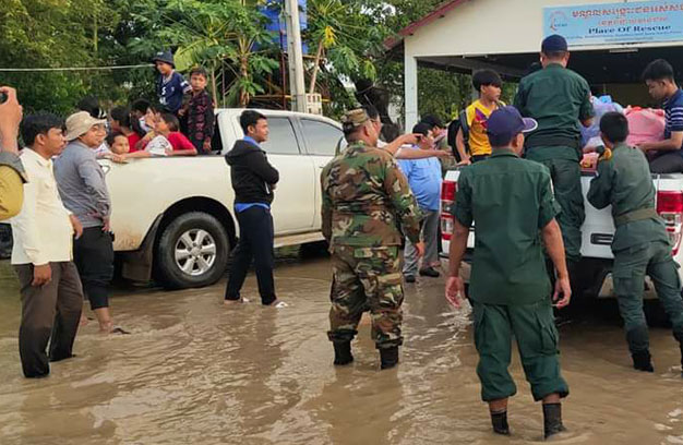 ខេត្តបន្ទាយមានជ័យ ៖ កម្លាំងនគរបាលនៃស្នងការខេត្តបន្ទាយមានជ័យ សហការជាមួយអាជ្ញាធរមូលដ្ឋាន កាលពីវេលាម៉ោង ៥និង៣០នាទីល្ងាច ថ្ងៃទី១១ ខែតុលា ឆ្នាំ២០២២ បានចុះអន្តរាគមន៍ជួយជម្លៀសកុមារកំព្រាប្រុស-ស្រី ចេញពីមណ្ឌលសង្គ្រោះជនអស់សង្ឃឹមទី២ ស្ថិតក្នុងភូមិឫស្សីក្រោក ឃុំឫស្សីក្រោក ស្រុកមង្គលបុរី ដែលកំពុងត្រូវបានរងការជន់លិចដោយទឹកជំនន់ ធ្វើឱ្យកុមារទាំងនោះ មិនអាចស្នាក់នៅបាន ត្រូវជម្លៀសទៅកាន់ទីទួលមានសុវត្ថិភាពភ្លាមៗ។