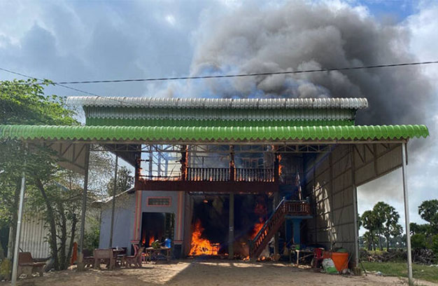 ខេត្តព្រៃវែង ៖ ប្តីប្រពន្ធ ២នាក់ បាននាំគ្នាក្រោកវេចបាយទៅស្រែ តាំងពីព្រឹកព្រលឹមស្រាងៗ ដោយទុកឱ្យកូនស្រីនៅចាំផ្ទះតែម្នាក់ឯង លុះក្រោយមក មិនដឹងថាយ៉ាងម៉េច ស្រាប់តែកើតមានអគ្គិភ័យ ឆាបឆេះផ្ទះយ៉ាងសន្ធោសន្ធៅ បណ្តាលឱ្យរងការខូចខាតអស់ទាំងស្រុង គិតជាទឹកប្រាក់ សរុបប្រមាណជាង ៧ពាន់ដុល្លារ។