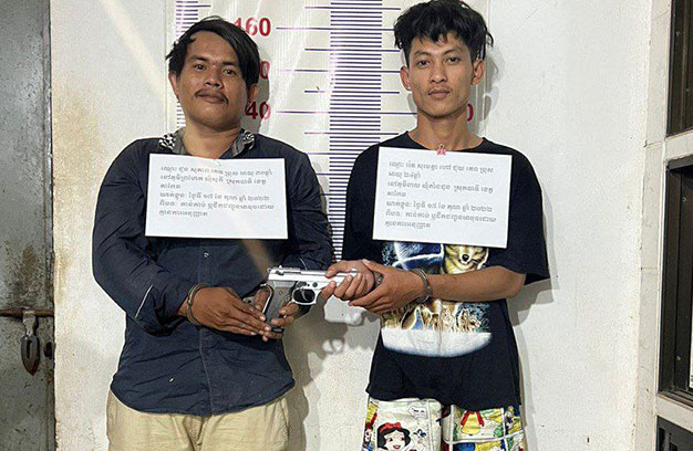 ខេត្តតាកែវ ៖ ជនសង្ស័យ ចំនួន២នាក់ ដែលជាមុខសញ្ញាកាប់ប្លន់ម៉ូតូ ទើបចេញពីពន្ធនាគារថ្មីៗ បែរជាបែកគំនិតបបួលគ្នាដើរចែកចាយគ្រឿងញៀនយ៉ាងសកម្ម ដោយមានទាំងកាំភ្លើងជាប់ខ្លួនថែមទៀត ទីបំផុតត្រូវសមត្ថកិច្ចស្រាវជ្រាវតាមចាប់ខ្លួនដល់លើផ្ទះសំណាក់ នាំយកមកសាកសួរ និងចាត់ការតាមច្បាប់។