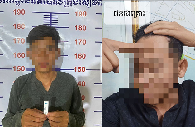 ខេត្តសៀមរាប ៖ បុរស ២នាក់ ជិះម៉ូតូជិតគ្នា ប៉ះគ្នាតិចតួច បែរជាផ្ទុះជម្លោះ ឈានដល់អំពើហិង្សា ដោយភាគីម្ខាងជា គ្រូកីឡា ខឹងសម្បាខ្លាំងពេក ទាញមួកការពារសុវត្ថិភាព វាយគូទំនាស់របស់ខ្លួនដែលជាមន្ត្រីនគរបាល ចំថ្ងាស បណ្តាលឱ្យពកក្បាល រងរបួសយ៉ាងដំណំ លុះសមត្ថកិច្ចឃាត់ខ្លួនយកទៅសាកសួរនិងពិនិត្យទឹកនោម ឃើញថាជនសង្ស័យជាគ្រូកីឡានោះ មានផ្ទុកសារធាតុញៀនក្នុងខ្លួន។