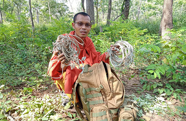 ខេត្តឧត្តរមានជ័យ ៖ អន្ទាក់ដាក់សត្វជាច្រើន ត្រូវបានកម្លាំងយោធា និងព្រះសង្ឃ សហការគ្នាចុះល្បាតជាប្រចាំ ដោយដកហូតបានជាក់ស្តែង យកមករក្សាទុក ខណៈក្រុមទុច្ចរិត មិនស្គាល់អត្តសញ្ញាណ ចេះតែបន្តលបលួចដាក់ ដើម្បីទាក់យកសត្វព្រៃ ជាប្រភេទសត្វកម្រ នៅក្នុង សហគមន៏ការពារដែនជម្រកព្រៃឈើសង្ឃរុក្ខាវ័ន ស្ថិតនៅត្រង់ចំណុចជាប់ព្រំប្រទល់ឃុំលំទង ស្រុកអន្លង់វែង។