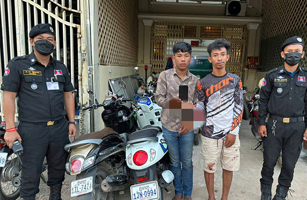 ភ្នំពេញ ៖ ជនសង្ស័យមួយក្រុម បានជិះម៉ូតូ៣គ្រឿង ធ្វើសកម្មភាពឆក់ទូរស័ព្ទអ្នកដំណើរតាមផ្លូវបានសម្រេច តែត្រូវអ្នកបើកម៉ូតូ កង់បីដឹក ជនរងគ្រោះ បើកកៀរផ្តួលម៉ូតូជនសង្ស័យបណ្តាលឱ្យដួល២គ្រឿង ហើយភ្លាមនោះ ក៏ត្រូវសមត្ថកិច្ចកំពុងល្បាត ប្រទះឃើញចុះឃាត់ខ្លួន បានចំនួន២នាក់ ចំណែកបក្ខពួកផ្សេងទៀតបានរត់គេចខ្លួនបាត់អស់។