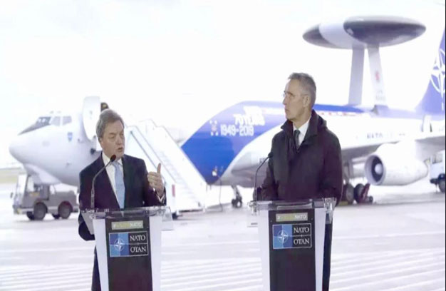អង្គការណាតូបានប្រកាសកាលពីសប្តាហ៍មុនថា ខ្លួននឹងដាក់ពង្រាយយន្តហោះឈ្លបយកការណ៍ និងប្រព័ន្ធព្រ មានលើអាកាស (AWACS) ទៅកាន់ទីក្រុង Bucharestជាកន្លែងដែលពួកគេនឹងចាប់ផ្តើមជើង ហោះហើរឈ្លប យកការណ៍លើទឹកដីណាតូតែប៉ុណ្ណោះ។