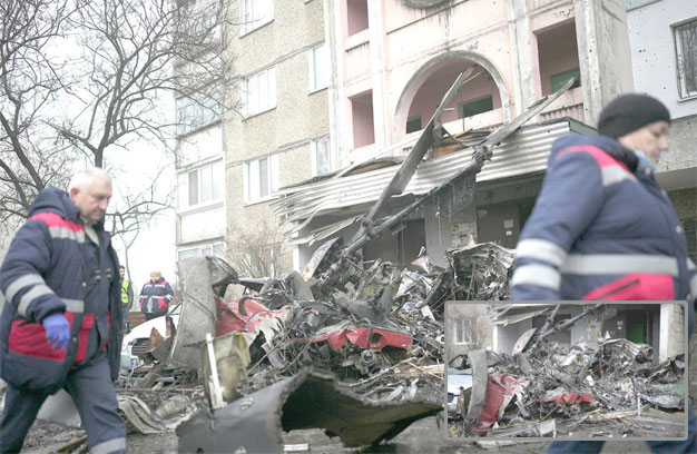 មន្ត្រីអ៊ុយក្រែនបាននិយាយថា យ៉ាងហោចណាស់មនុស្ស ១៨ នាក់ រួមទាំងរដ្ឋមន្ត្រីក្រសួងមហាផ្ទៃ មន្ត្រីជាន់ខ្ពស់ក្រសួងផ្សេងទៀតនិងកុមារបីនាក់បានស្លាប់កាលពីព្រឹកថ្ងៃពុធនៅពេលដែលឧទ្ធម្ភាគចក្រមួយគ្រឿងបានធ្លាក់នៅជិតកសាលាមត្តេយ្យនៅខាងក្រៅទីក្រុងគៀវ។អភិបាលតំបន់បាននិយាយថា មនុស្ស ២៩ នាក់ក៏បានរងរបួសក្នុងនោះមានកុមារ ១៥ នាក់ផងដែរ។