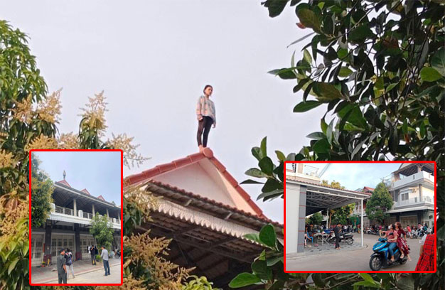 ប្រភពដដែល បានបន្ថែមថា បន្ទាប់មក នាងបានរត់ឡើងទៅលើដំបូលផ្ទះល្វែងមួយកន្លែង ហើយឈរនៅលើ ព្រំដំបូលផ្ទះ ប្រុងលោតសម្លាប់ខ្លួន ធ្វើឱ្យកើតមានការផ្អើលឆោឡោយ៉ាងខ្លាំង។ ភ្លាមនោះ ក្រុមគ្រួសារបានរាយ ការណ៍សុំអន្តរាគមន៍ពីកម្លាំងសមត្ថកិច្ច និងកម្លាំងអាវុធ ហត្ថខណ្ឌដង្កោ ចុះមកជួយអន្តរាគមន៍ និងព្យាយាមលួង លោមឱ្យនាងចុះមកក្រោមវិញដែរ ប៉ុន្តែនាងពុំព្រមចុះឡើយ។