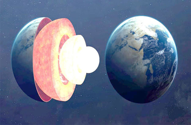 ផែនដីត្រូវបានបង្កើតឡើងដោយសំបកខាងក្រៅ(The Crust) ផ្នែកនៃផែនដីដែលព័ទ្ធជុំវិញស្នូលកណ្តាល(The Mantle) និងស្នូលខាងក្នុង និងខាងក្រៅ។ ស្នូលខាងក្នុងរឹងគឺស្ថិតនៅចម្ងាយប្រហែលជាង៥១៤៩គីឡូម៉ែត្រពីសំបកផែនដី ហើយត្រូវបានបំបែកចេញពីស្រទាប់ពាក់កណ្តាលរឹងដោយស្នូលខាងក្រៅរាវដែលអនុញ្ញាតឱ្យស្នូលខាងក្នុងបង្វិលក្នុងល្បឿនខុសគ្នាពីការបង្វិលផែនដីខ្លួនឯង។