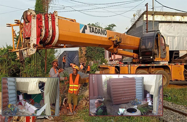 បាត់ដំបង ៖ រថភ្លើងដឹកទំនិញ ១ខ្សែ កំពុងបើកបរសុខៗ សង្ស័យដាច់កង់ បណ្តាលឱ្យធ្លាក់ផ្លូវ ក្រឡាប់ទូកុងតឺន័រ ២ទូ សង្កត់ផ្ទះពលរដ្ឋ ខូចខាតចំនួន២ខ្នង តែសំណាងល្អ មិនមានគ្រោះថ្នាក់ដល់មនុស្សឡើយ។