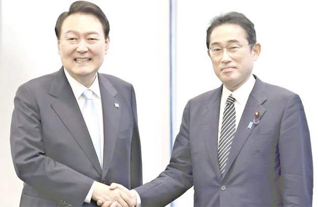 ក្នុងជំនួបគ្នាប្រជុំកំពូលកាលពីថ្ងៃព្រហស្បតិ៍ទី១៦មីនាឆ្នាំ២០២៣មេដឹកនាំប្រទេសជប៉ុននិងកូរ៉េខាងត្បូង បានព្រមព្រៀងគ្នាទម្លាក់ចោលជម្លោះពាណិជ្ជកម្មដែលបានអូសបន្លាយអស់រយៈពេលជិតបួនឆ្នាំលើសម្ភារៈបច្ចេកវិទ្យា។នេះគឺជាដំណើរទស្សនកិច្ច លើកដំបូងក្នុងរយៈពេល១២ឆ្នាំខណៈដែលប្រទេសជិតខាងទាំងពីរស្វែងរកការប្រឈមមុខនឹងការគំរាមកំហែងពីបាញ់មីស៊ីលញឹកញាប់របស់កូរ៉េខាងជើងនិងការកើនឡើងនៃការព្រួយបារម្ភពីប្រទេសចិន។