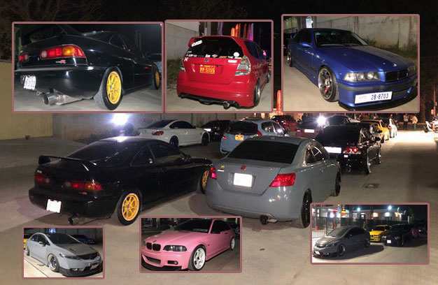 រថយន្តដែលត្រូវបានឃាត់ទុកទាំង១៦គ្រឿងនោះ រួមមាន ៖ ១-ម៉ាក HONDA FIT ពណ៌ក្រហម ផ្លាកលេខPP-5155, ២-ម៉ាកBM ពណ៌ខៀវ ផ្លាកលេខភ្នំពេញ 2B-8703, ៣-ម៉ាក SUBARU BRZ ពណ៌ខ្មៅ ផ្លាកលេខ កម្ពុជា KUN0707, ៤-ម៉ាក BMW ពណ៌ ស គ្មានស្លាកលេខ, ៥-ម៉ាក HONDA CIVIC ពណ៌ប្រផេះ ផ្លាកលេខភ្នំពេញ 2AD-3713, ៦-ម៉ាក BMW ពណ៌លឿង ផ្លាកលេខ ភ្នំពេញ 2P-0737, ៧-ម៉ាក BMW ពណ៌ខៀវ ផ្លាកលេខភ្នំពេញ 2P-7191, ៨-ម៉ាក BMW ពណ៌ផ្កាឈូក ផ្លាកលេខ ភ្នំពេញ 2T-7188, ៩-ម៉ាក ACURA ILX ពណ៌ស ផ្លាកលេខ ភ្នំពេញ 2AJ-0212, ១០-ម៉ាក HONDA CIVIC ពណ៌ខ្មៅ ផ្លាកលេខភ្នំពេញ 2H-6660, ១១-ម៉ាកHONDA FiT ចង្កូតស្តាំ ពណ៌ផ្ទៃមេឃ ផ្លាកលេខ កំពង់ស្ពឺ KPS1350, ១២-ម៉ាក HONDA ពណ៌ប្រផេះ ផ្លាកលេខកណ្តាល 2B-5456, ១៣-ម៉ាក ACURA INTECRA ពណ៌ខ្មៅ ផ្លាកលេខភ្នំពេញ 2V-3122, ១៤-ម៉ាក FORD MUSTANG គ្មានស្លាកលេខ, ១៥-ម៉ាក HONDA CIVIC ពណ៌ខ្មៅ ផ្លាកលេខភ្នំពេញ 2O-1031, និង ១៦-ម៉ាក BMW ពណ៌ទឹក ប្រាក់ ផ្លាកលេខ ភ្នំពេញ 2AF-2665។