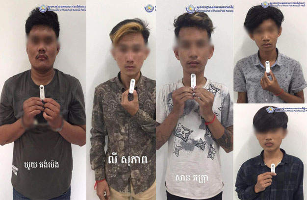 ជនសង្ស័យចំនួន៥នាក់ ដែលត្រូវសមត្ថកិច្ចចាប់ឃាត់ខ្លួន រួមមាន ទី១-ឈ្មោះឃួយ គង់ម៉េង ស្នាក់នៅ ផ្ទះជួល លេខ៨ ផ្លូវបេតុង សង្កាត់ដង្កោ ខណ្ឌដង្កោ។ ទី២-ឈ្មោះសាន ភត្ត្រា មុខរបរសិស្ស ស្នាក់នៅផ្ទះលេខ១២៣ ផ្លូវ វេងស្រេង សង្កាត់ស្ទឹងមានជ័យ៣ ខណ្ឌមានជ័យ។ ទី៣-ឈ្មោះធី ម៉េងហុង មុខរបរកម្មកររោងចក្រ ស្នាក់នៅ ផ្ទះមិនចាំលេខ ផ្លូវបេតុង សង្កាត់ចោមចៅ១ ខណ្ឌពោធិ៍សែនជ័យ។ ទី៤-ឈ្មោះចាន់ ធារិទ្ធ មុខរបរនៅផ្ទះ ស្នាក់ នៅផ្ទះមិនចាំលេខ ផ្លូវលេខ១៦៣ កែង៣៣០ សង្កាត់បឹងកេងកង៣ ខណ្ឌបឹងកេងកង និងទី៥-ឈ្មោះលី សុភាព មុខរបរសិស្ស ស្នាក់នៅផ្ទះលេខ៨៦ ផ្លូវលេខ១ សង្កាត់ដង្កោ ខណ្ឌដង្កោ។