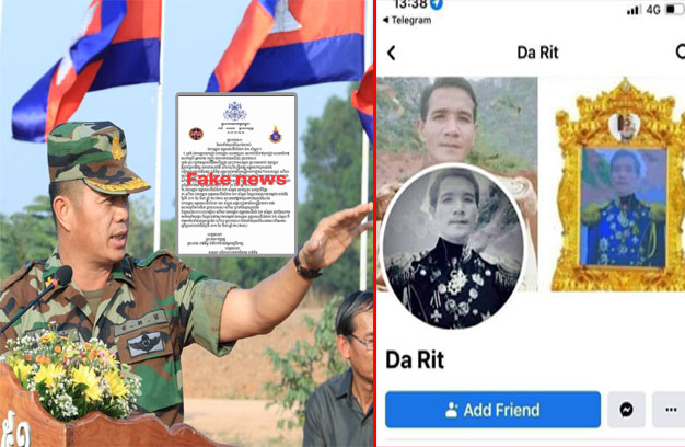 បាត់ដំបង ៖ ម្ចាស់គណនីហ្វេសប៊ុកមួយ ដែលមានឈ្មោះ Da Rit បានតាំងខ្លួនជាសែរាជវង្ស រហូតដល់ហ៊ាន សរសេរបង្ហោះព័ត៌មានមិនពិត ធ្វើឱ្យប៉ះពាល់ដល់កិត្តិយសរបស់លោកឧត្តមសេនីយ៍ឯក ឯក សំអូន មេបញ្ជា ការយោធភូមិភាគទី៥ និងត្រូវបាន កម្លាំងសមត្ថកិច្ចជំនាញ ស្រាវជ្រាវតាមឃាត់ខ្លួន ដើម្បីនាំយកមកសាកសួរ និងចាត់ការតាមច្បាប់។